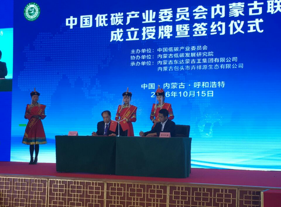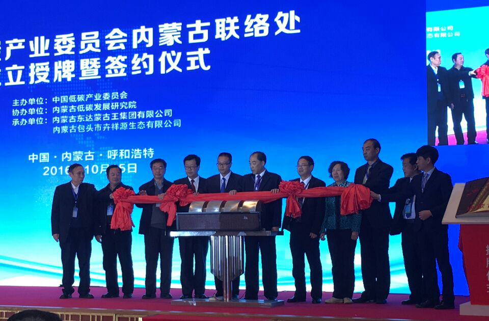 2016年10月15日,由中国低碳产业委员会主办、内蒙古低碳发展研究院协办的中国低碳产业委员会内蒙古联络处成立授牌暨签约仪式在呼和浩特举行。